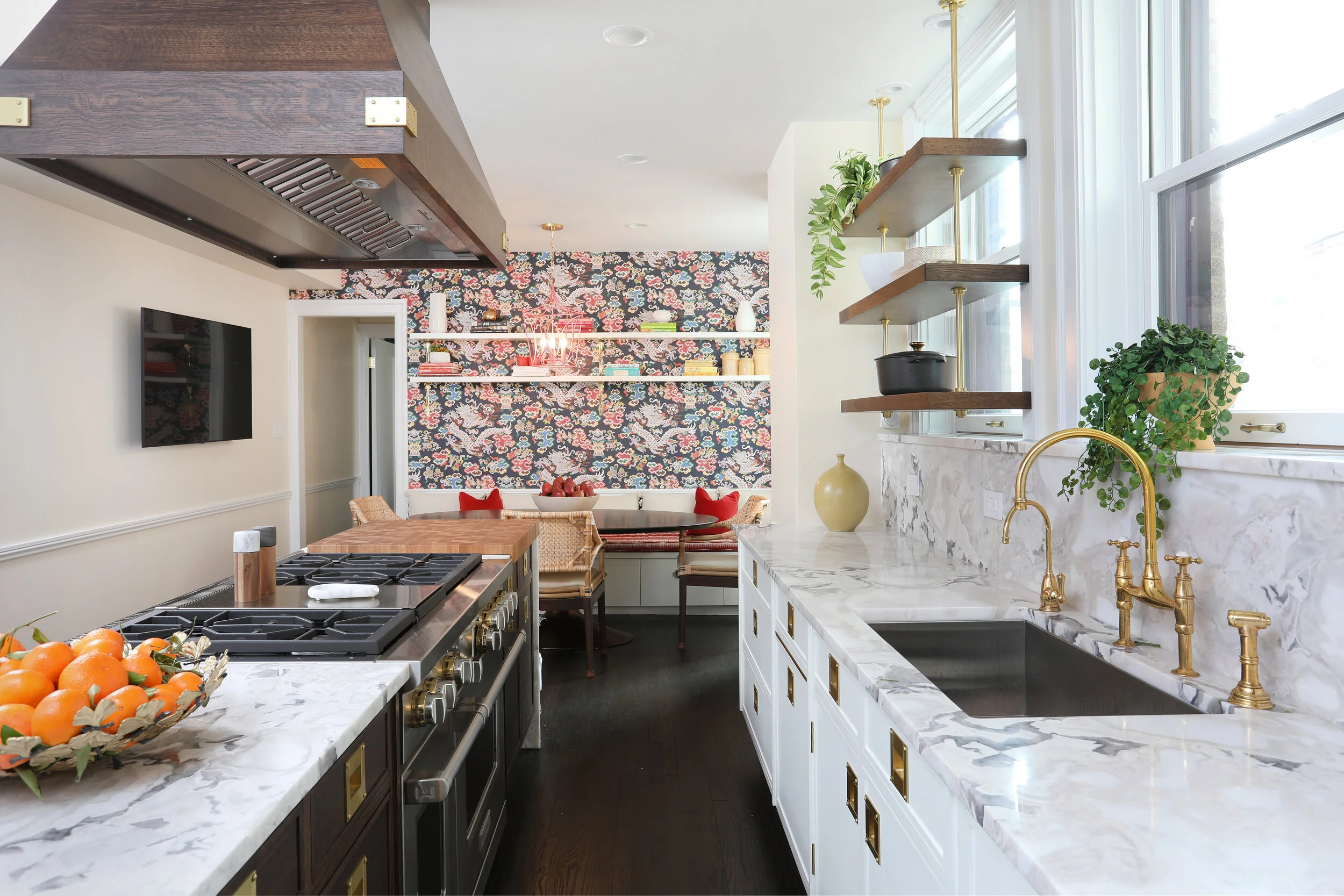 The unique design of this mid-rise, historic duplex was achieved through a delightful collaboration with the homeowners. Their colorful and vibrant style is evident in every detail, from their selection of fun fabrics and wallcoverings to the combination of both modern and antique furnishings. While many pieces were purchased new for this new home, room was also made for cherished items and collectibles. We absolutely love working with clients who have such an amazing eye for interior design and who aren’t afraid to showcase their personality with bold design elements and statement pieces.